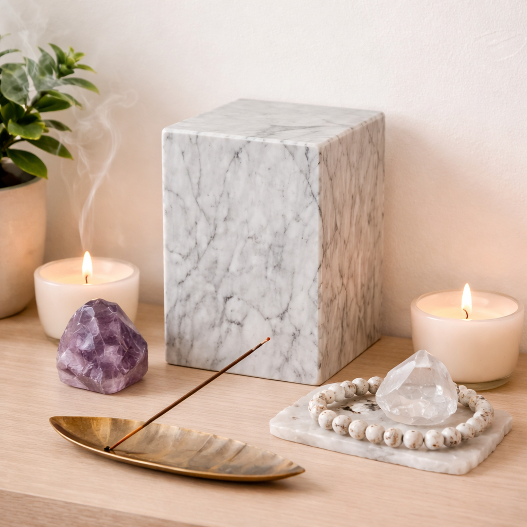 A Marble Stone Urn is a beautiful way to remember our loved ones. Preserve the memory of your loved one in a secure vessel that is both functional and elegant. Find peace of mind knowing that this Cremation Urn will keep your memories at hand securing the ashes with a timeless style that will flow seamlessly with your home decor.