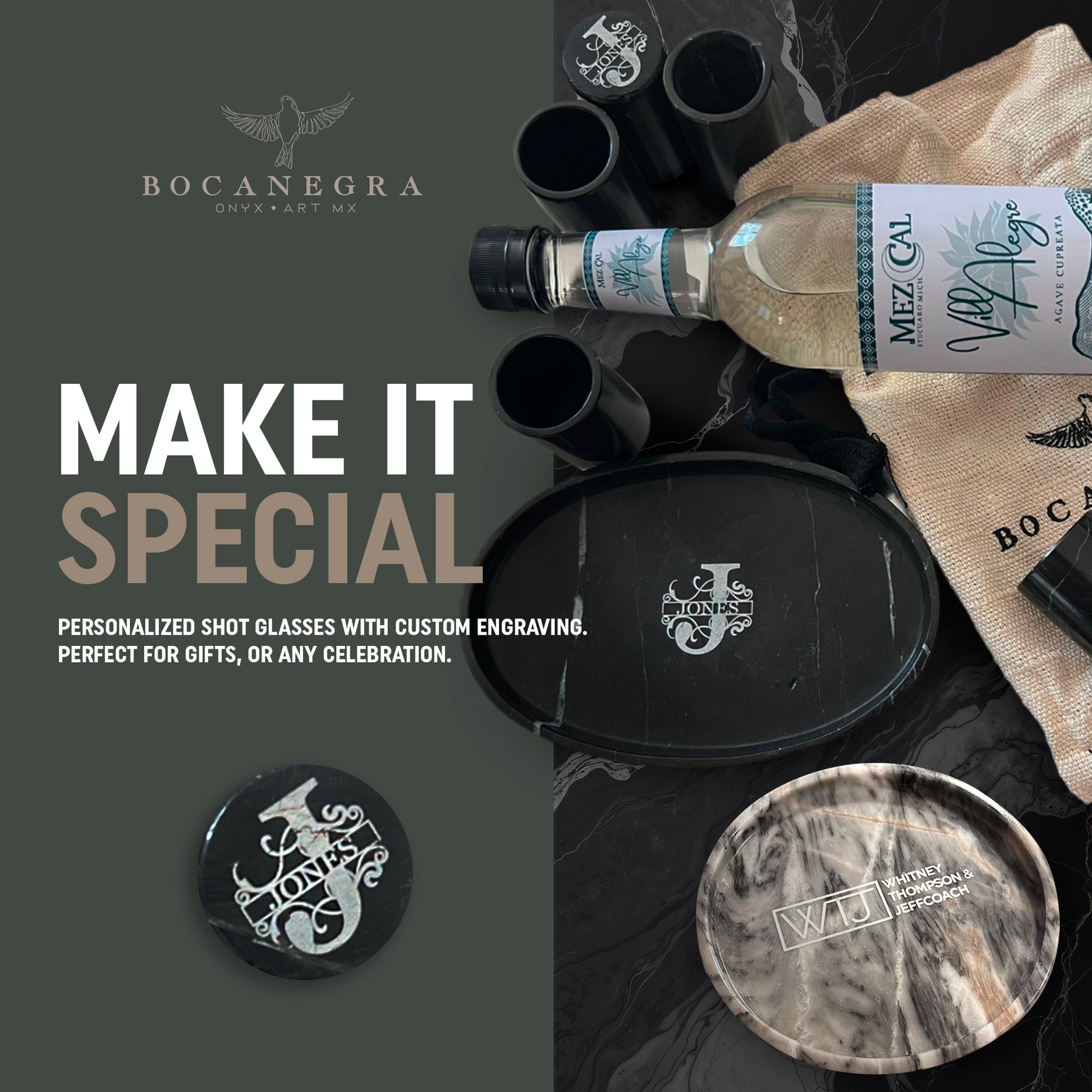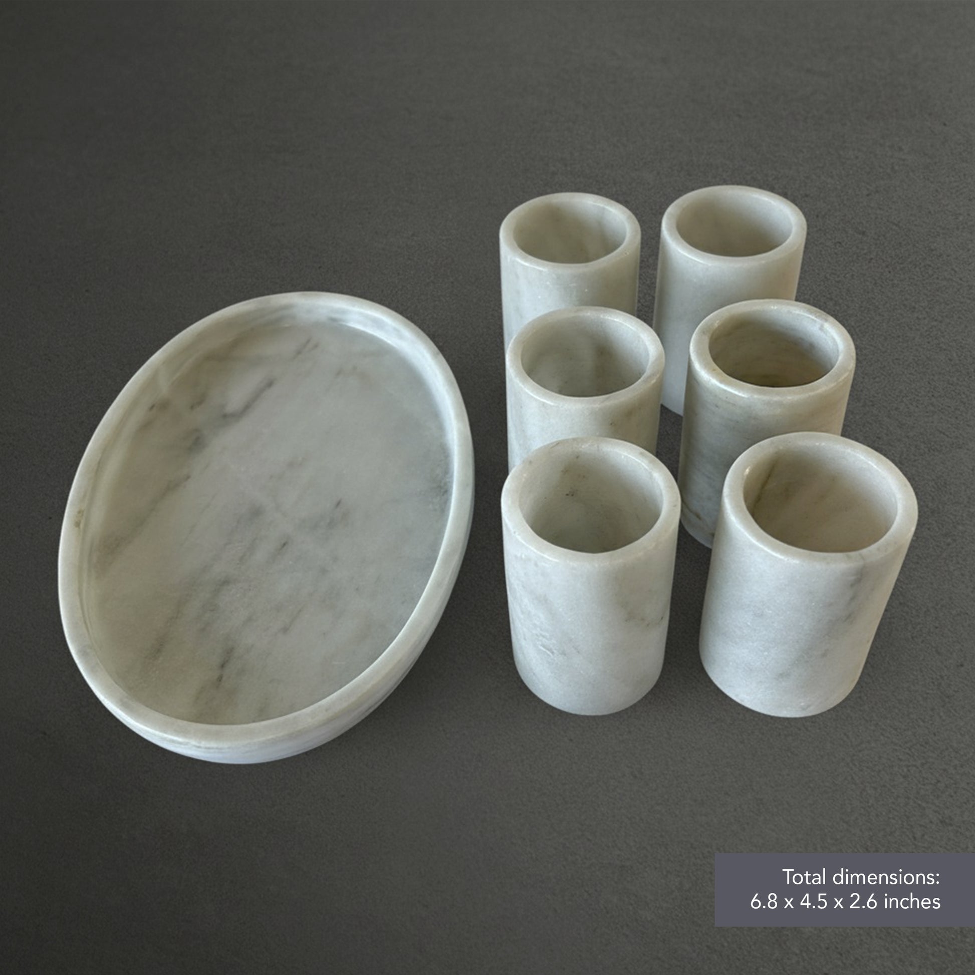 Add a touch of style and elegance to those special moments with your friends or family with this set of 6 tequila shots and a Marble tray.